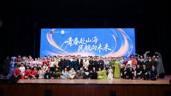 灯光璀璨映初心,青春逐梦向蓝天。12 月 5 日 14 时,民航学院 “一学院一特色一品牌” 专场展演以 “青春赴山海 民航向未来” 为主题温情启幕。整场展演紧扣 “立德树人” 根本任务,以 “逐梦启航・青春序章”“笃行致远・民航担当”“薪火相传・未来可期” 三大篇章为脉络,将 “忠诚担当、科学严谨、团结协作、敬业奉献” 的当代民航精神融入艺术表达,为现场观众呈现了一场兼具专业底蕴与青春活力的视听盛宴,生动诠释了学院 “生命安全全周期,航空安全全链条” 的育人理念。