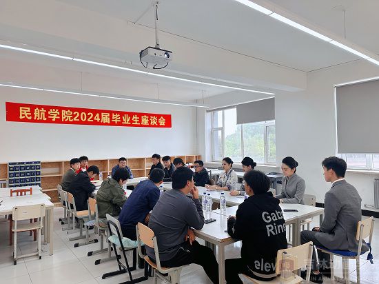 2024年5月11日上午9时,民航学院召开2024届毕业生座谈会。学院副院长杨东平、院长助理陈雪娇、学办副主任赵立伟及2024届各专业毕业生代表。