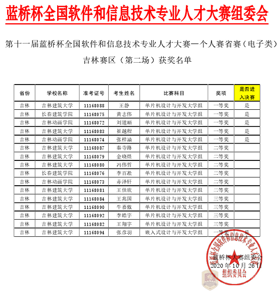 10月17日,民航学院2017级飞行器制造工程专业的3名学生,首次参加了第十一届蓝桥杯全国软件和信息技术专业人才大赛个人赛省赛(电子类),并取得优异成绩。其中,刘道顺、张梓涵同学获得吉林赛区一等奖,并入围全国总决赛;赤泽轩同学获得吉林赛区二等奖。