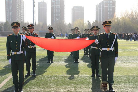 灿烂的阳光倾洒在吉动操场上,初升的朝阳映衬着民航娇子的火热雄心。在国旗台前,民航学院的全体学生在学生会干部的安排下,按照班级指定位置站成整齐的队伍,静静等待升旗仪式的到来。