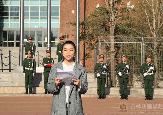 仪式之后,18级空乘一班何佳雪同学进行了以宣传国防教育为主题的国旗下演讲。她以饱满的精神、充满激情的话语,详细地将国防的概念、重要性传达给了全体同学。随后,她用“国家兴亡,匹夫有责”劝勉同学们树立国防观念,增强国防意识,并呼吁同学互相监督,共同促进,共同营造更加文明美丽的校园。随着何佳雪同学发言完毕,本次升旗仪式到此结束。